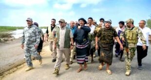 المخا: الفريق طارق صالح برفقة العميد سليمان منصر وعدد من القيادات العسكرية.. يتفقد المناطق المتضررة من السيول .. ويوجّه بتكثيف الدعم للمنكوبين