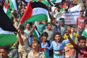 وأكد المتظاهرون في بيان، التضامن الكامل مع الشعب الفلسطيني، كما طالبوا “بالوقف الفوري لجرائم الاحتلال الإسرائيلي الوحشية بحقهم وإنهاء المأساة الإنسانية.