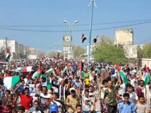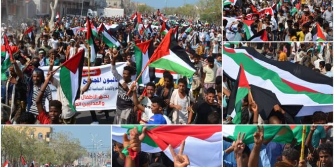 خرجت أعداد كبيرة من أبناء وسكان المخا، اليوم، في وقفة وتظاهرة حاشدة، تضامنا مع الشعب الفلسطيني، وتنديدا بجرائم الاحتلال الإسرائيلي الوحشية بحق سكان قطاع غزة.