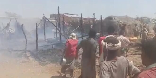 إندلع عند الساعة الواحدة والنصف من ظهر اليوم الثلاثاء/ 2024_03_05م، حريقاً كبيراً في منزلين لأسرتين نازحتين ،وذالك في مخيم اليابلي للنازحين “مربع بني فرتوت” ..