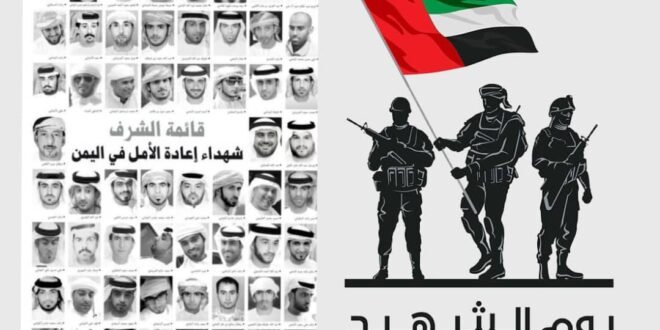 في الـ30 من نوفمبر، يستحضر اليمنيون ومعهم كل العرب ذكرى يوم الشهيد الإماراتي، اليوم الذي خُلّد فيه شرفُ الذين قدّموا أرواحهم دفاعًا عن الحق، ووقفوا إلى جانب اليمن في معركته الكبرى ضد المشروع الحوثي–الإيراني.
